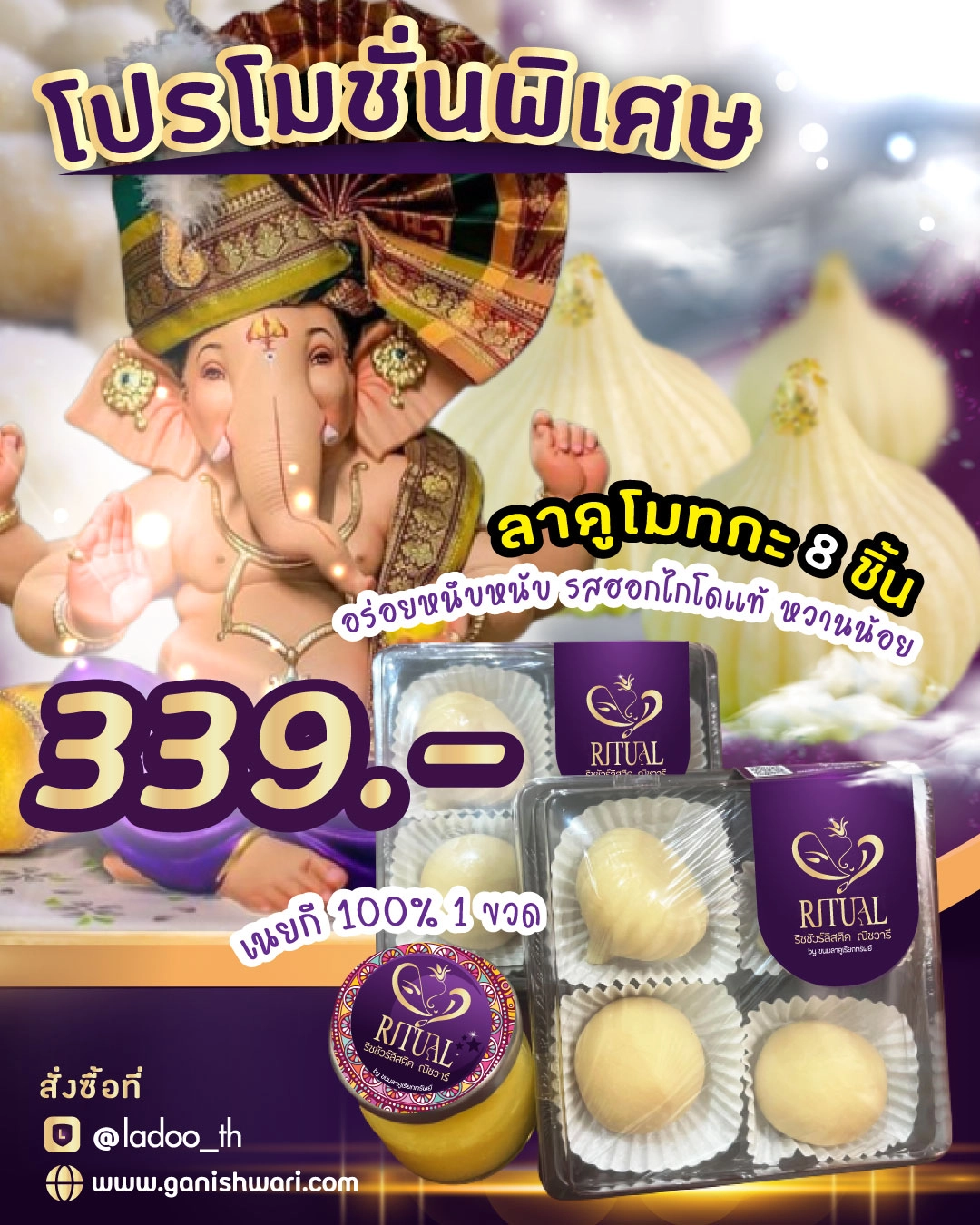 – ประกอบด้วย ขนมลาดูโมทกะ รสนมสดฮอกไกโด รวม 2 กล่อง 8 ลูก + เนยกีอินเดียแท้ 100% 1 ขวด